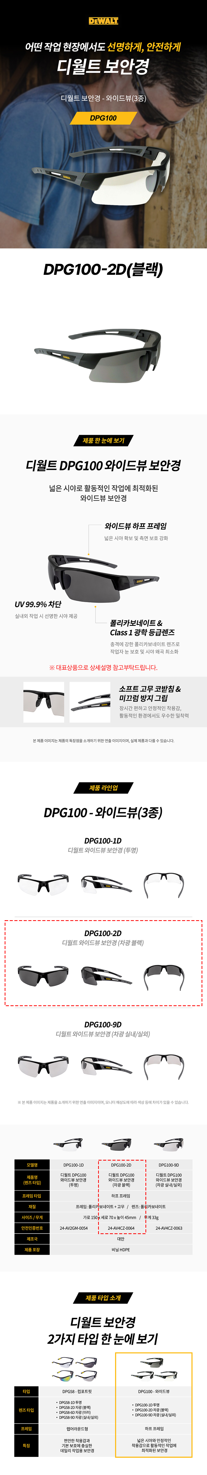 [디월트]와이드뷰 보안경 DPG100-2D(블랙/자외선차단)