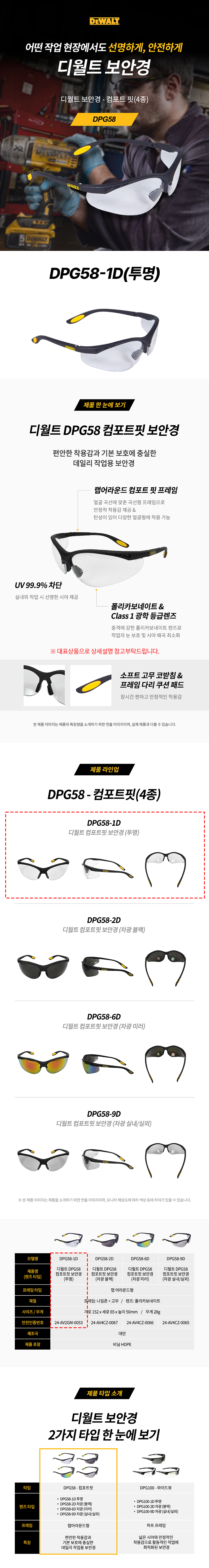 [디월트]컴포트핏 보안경 DPG58-1D(투명/자외선차단)