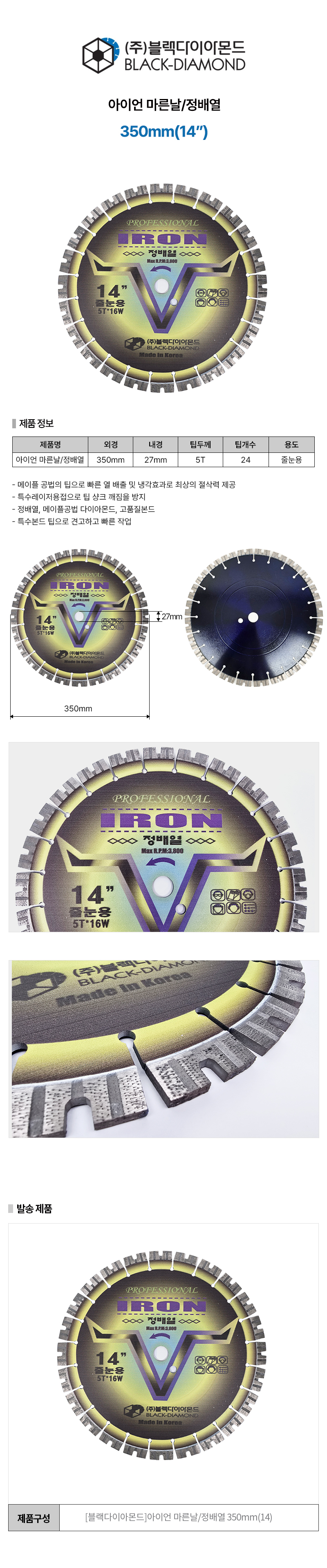 [블랙다이아몬드]아이언 마른날/정배열 350mm(14)